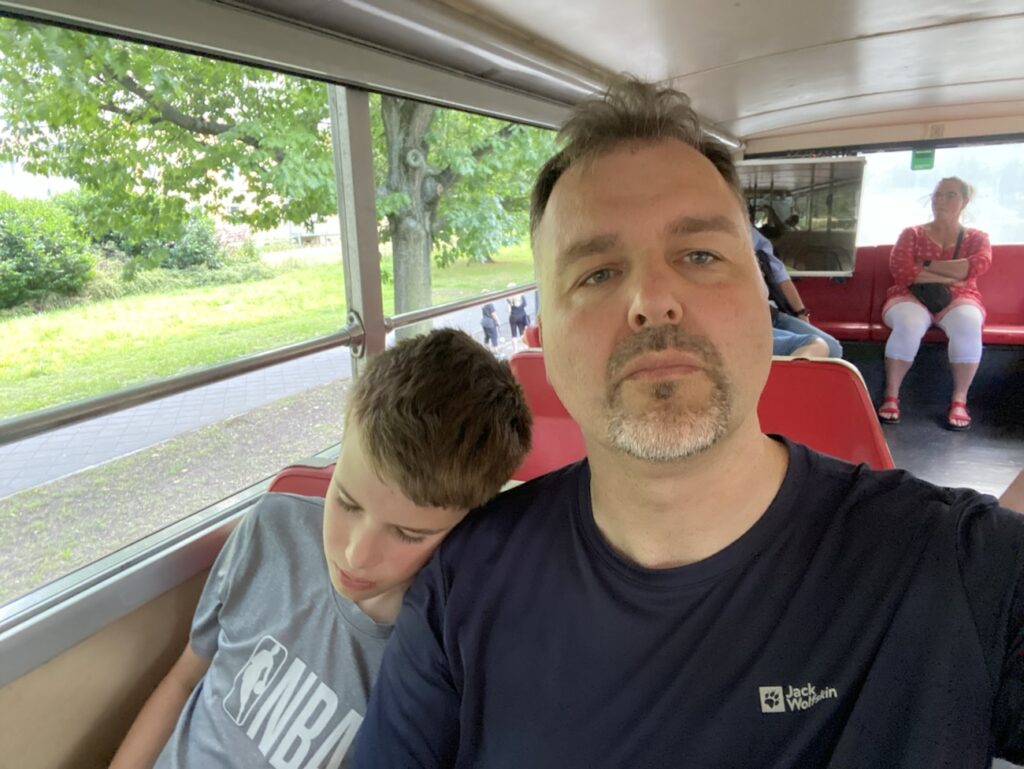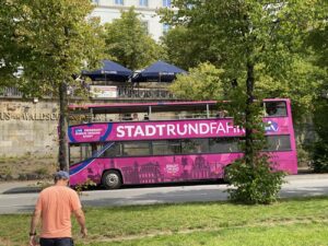 Dann steigen wir wieder in unseren Bus, um Kreuz und quer durch Dresden zurück zum blauen Wunder und unserem Parkplatz zu fahren