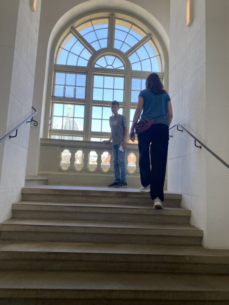 Benni hat die gute Idee, dass wir auch zur Kuppel hoch steigen sollten. Die Aussicht da oben belohnt für den steilen Aufstieg.