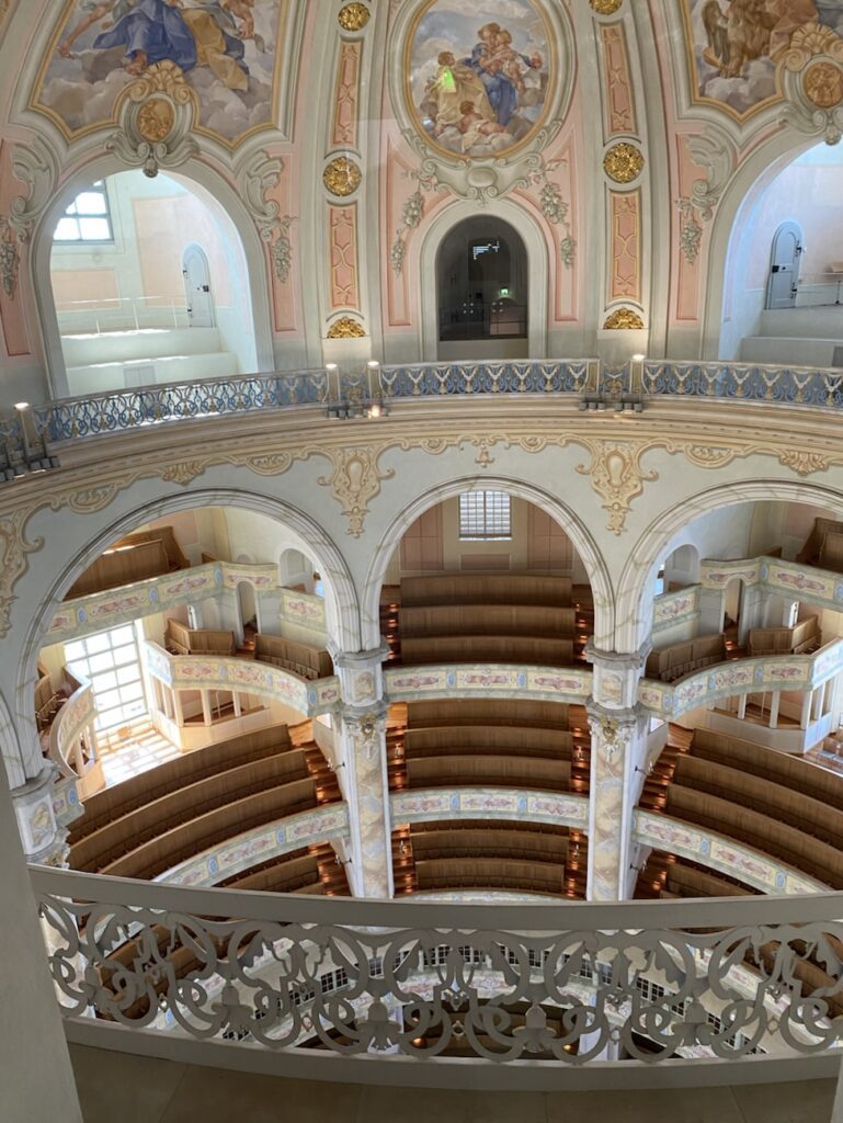 Von der Kuppel aus erkennen wir, dass ein Radrennen durch die Stadt führt, dessen Ziel auf dem Platz vor der Frauenkirche ist.