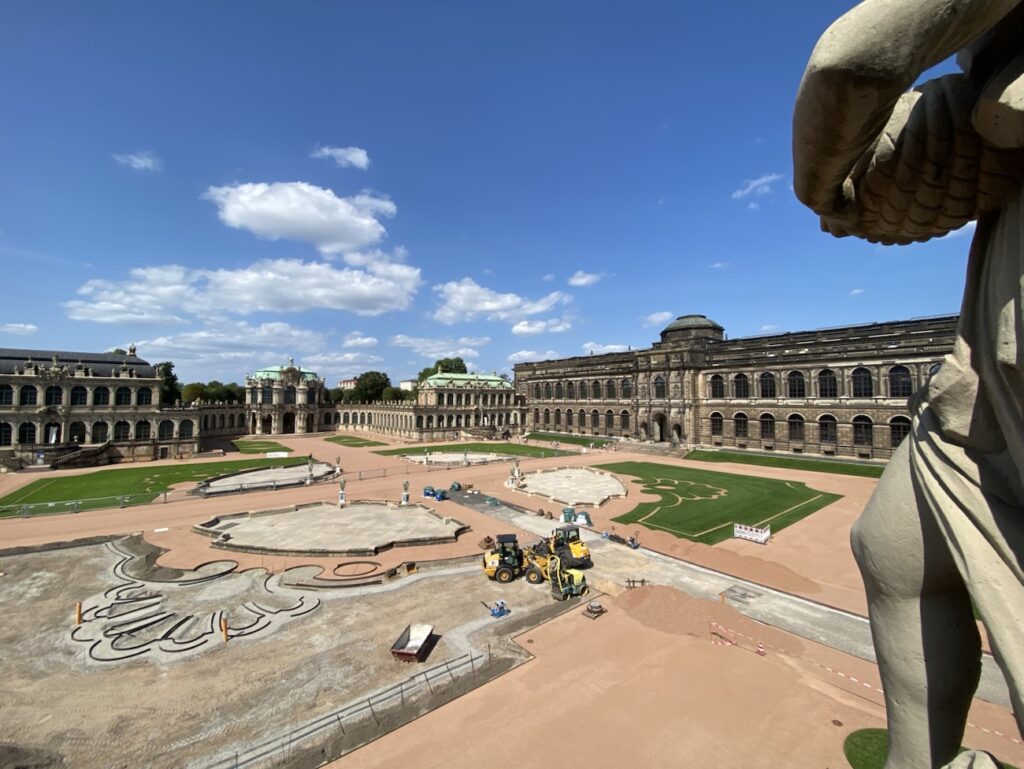 Auf dem Weg zurück zur Bushaltestelle laufen wir noch über und durch den Zwinger