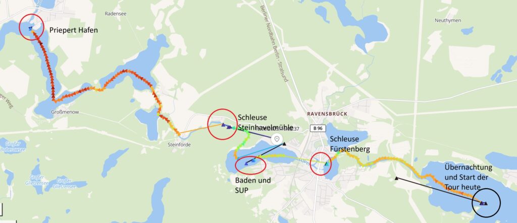An der Schleuse Steinhavelmühle mussten wir erneut so lange warten (1-2 Stunden), dass klar war, dass wir nicht weiter als bis Priepert kommen würden.